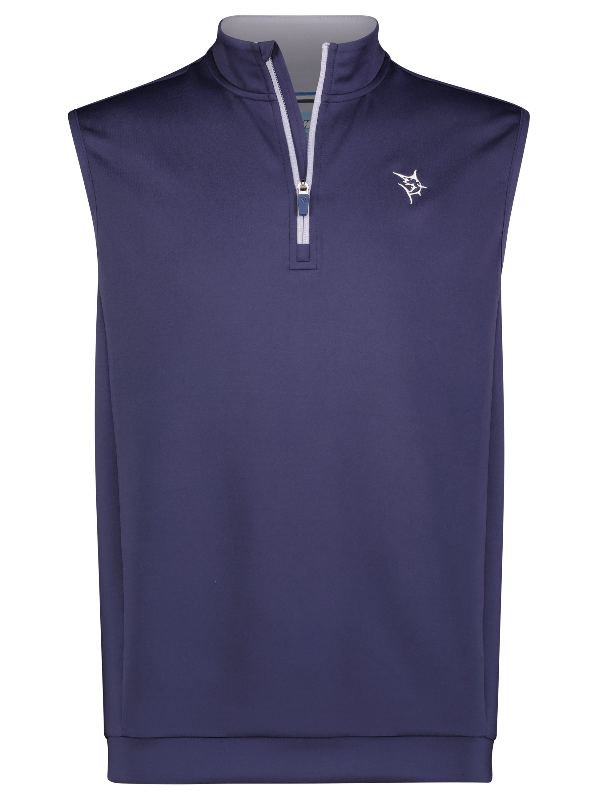 Technical midweight performance fabrication. This fabric is soft on the inside and smooth on the outside. The four-way stretch adds to the comfort and versatility. This is a great piece when want a simple pullover without the bulk of a full zipper. Great looking with a polo and a big hit on the golf course. Embroidered left chest logo and Silicone icon logo on back neck.