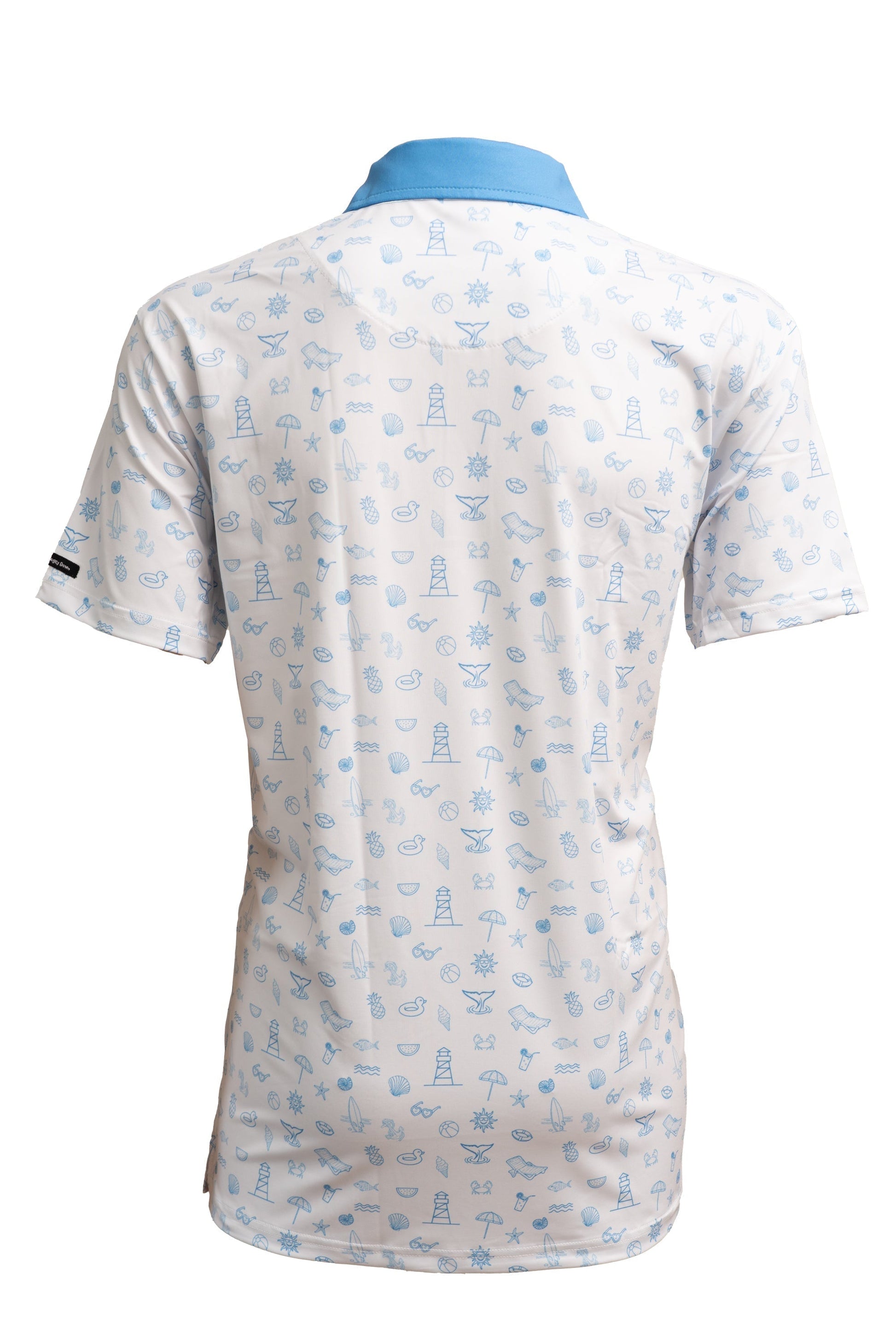 - Vibrant Design: Featuring a bold and eye-catching print that captures the essence of the beach. This polo is sure to turn heads and spark conversations wherever you go.