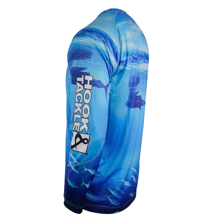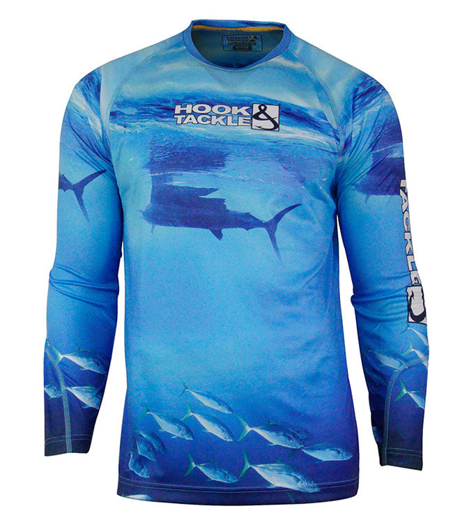 Protect yourself from the sun’s harmful UV rays with the Hook & Tackle Flying Solo shirt. Proprietary Solar System UPF 50+ rated fabric incorporates the latest sun protection technology. Wicked Dry & Cool fabric technology wicks moisture from the skin to enhance your comfort level. Designed with radial sleeves to allow you a full range of movement when casting or reeling in.