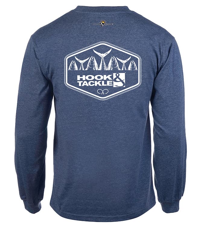This Hook & Tackle® Heads or Tails performance fishing long sleeve shirt features a leaping sailfish on the rear and the Hook & Tackle® logo on one sleeve and on the front.