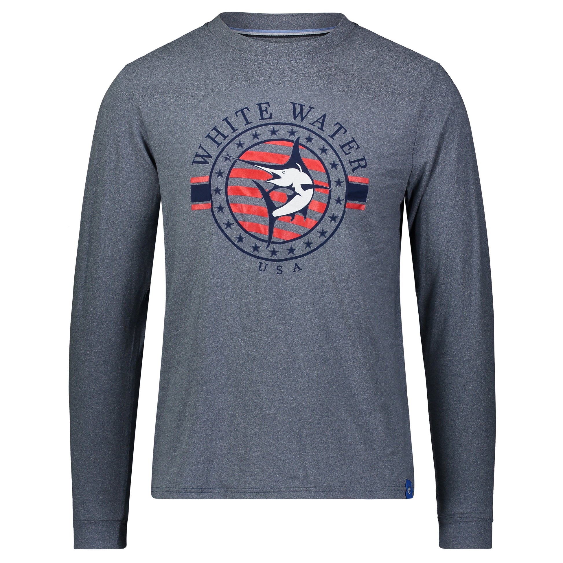 Our USA Circle performance tee is based on the Hydroflex Short Sleeve, except we use raglan sleeves for a better all around fit in a long sleeve. All Hydroflex shirts feature our Proprietary UV50, 360 Flex Stretch speed dry fabric, which we brushed for the ultimate hand feel and added stretch for ultimate mobility and comfort. You may be hard pressed to believe this is a performance fabric and not cotton. This garment features the White Water logo on the chest. Woven Icon branding at the hem.