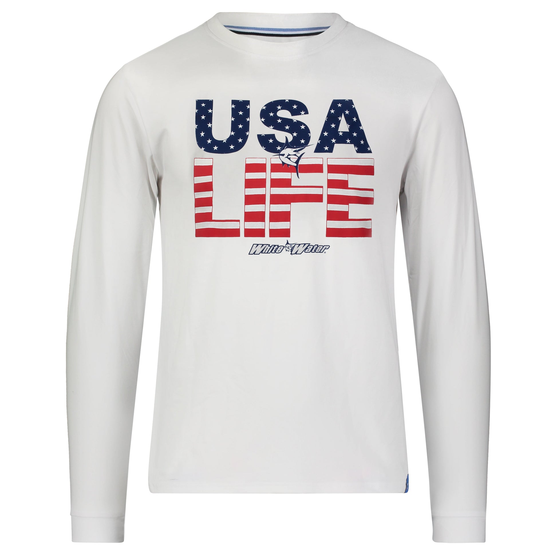 Our USA Life performance tee is based on the Hydroflex Short Sleeve, except we use raglan sleeves for a better all around fit in a long sleeve. All Hydroflex shirts feature our Proprietary UV50, 360 Flex Stretch speed dry fabric, which we brushed for the ultimate hand feel and added stretch for ultimate mobility and comfort. You may be hard pressed to believe this is a performance fabric and not cotton. This garment features the White Water logo on the chest. Woven Icon branding at the hem.